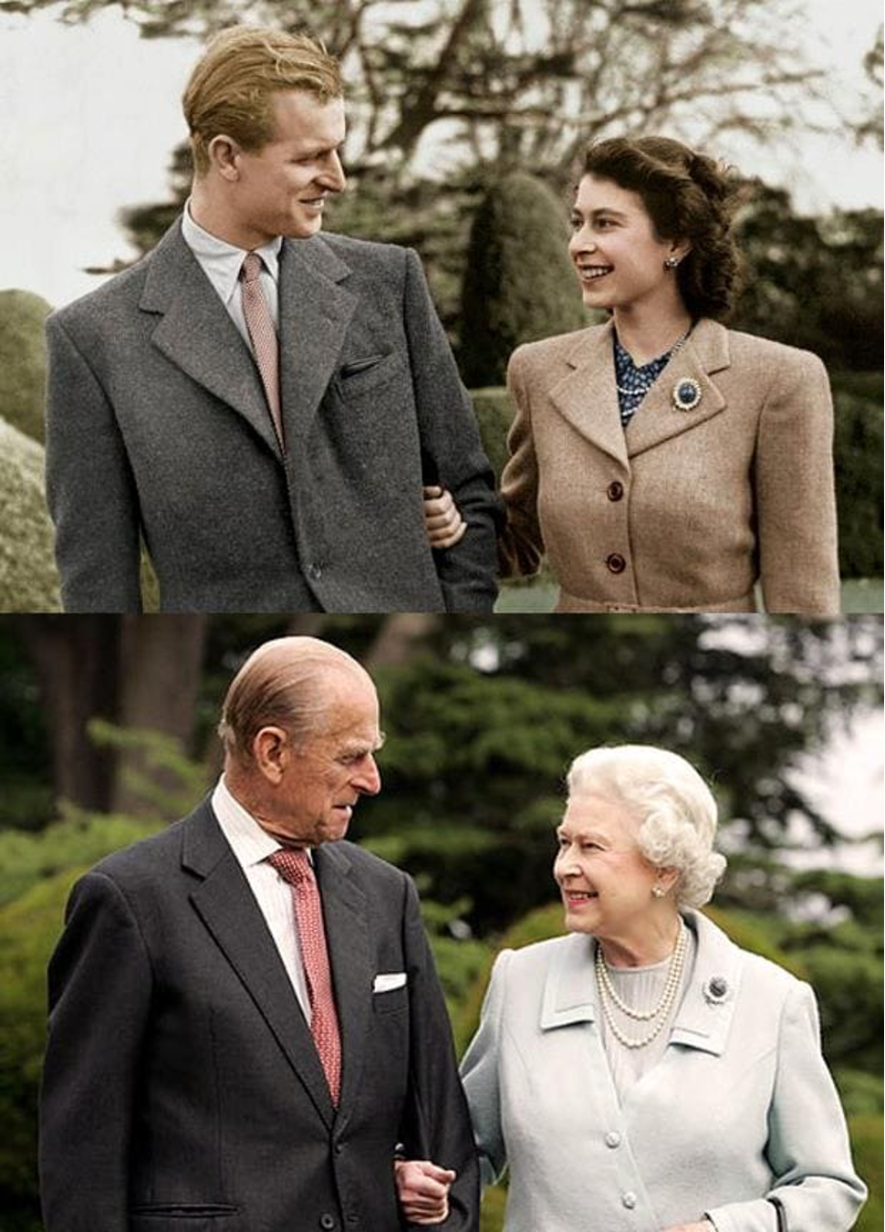 Своего будущего мужа Елизавета впервые встретила в детстве: ей было 8 лет, ему — 13. Во время Второй мировой она писала ему письма на фронт и ждала возвращения мужчины, ставшего к 1945-му году лейтенантом. Отец не одобрил выбор дочери — его не устраивало, что род юноши обнищал и имел связи с нацистами. Несмотря на мнение Георга VI, девушка осталась верна своим чувствам и прожила в браке с мужем 73 года.